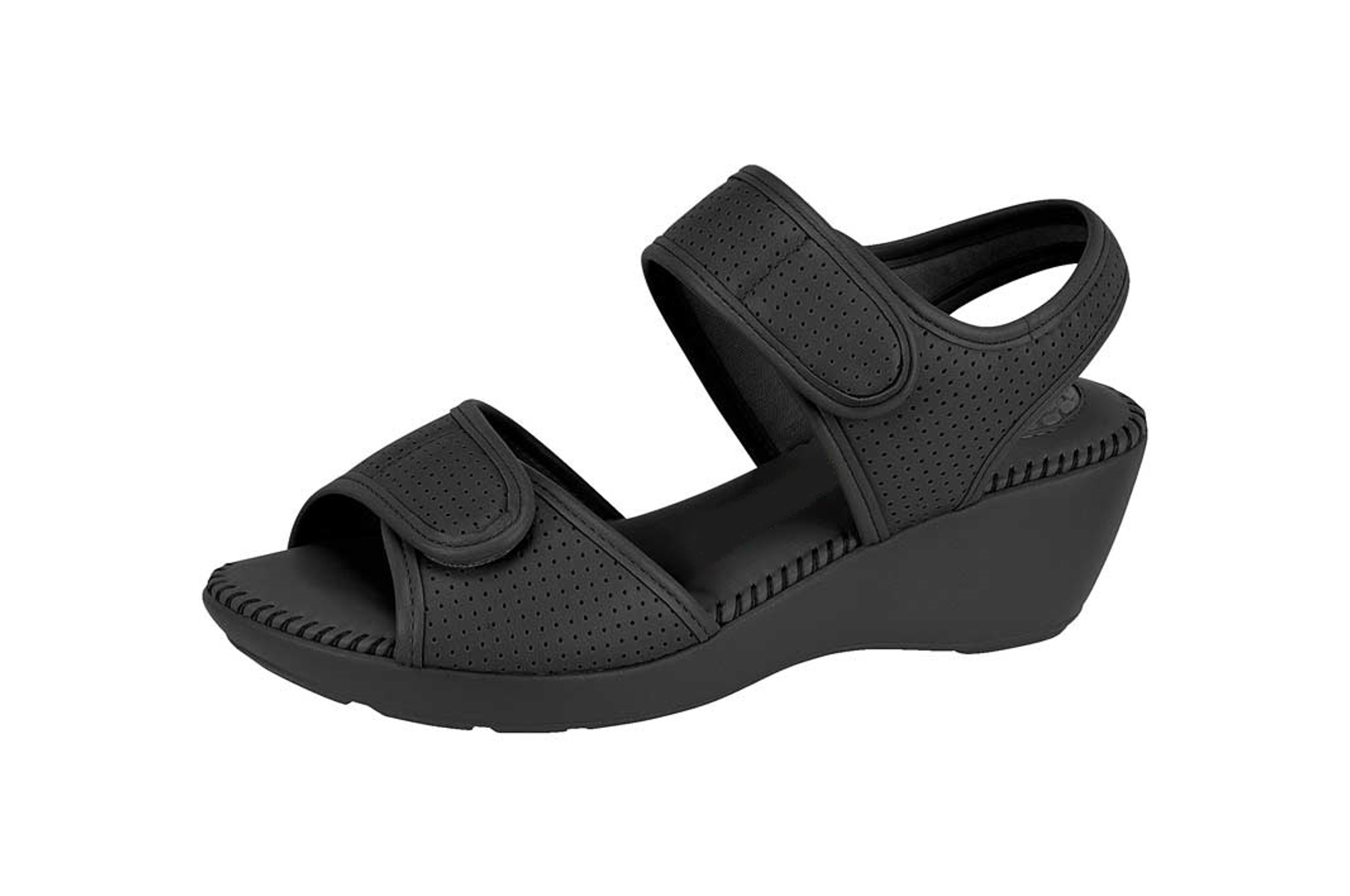 Sandália com aperto em velcro. Salto em cunha de 3 cm.
