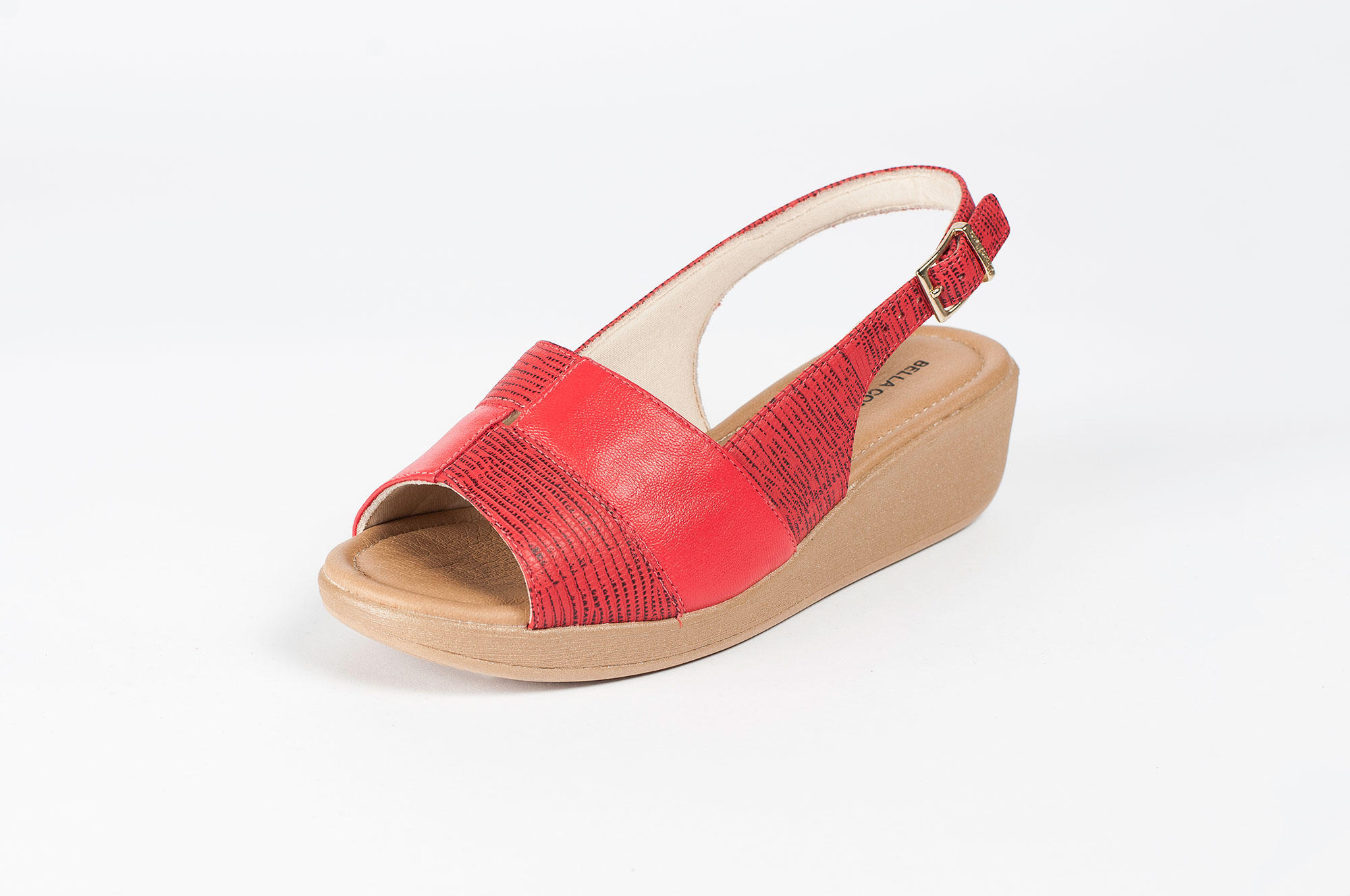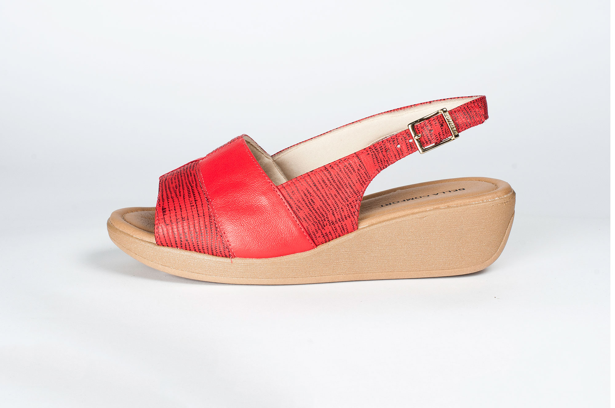 Sandália Bege com salto em cunha de 2 cm.