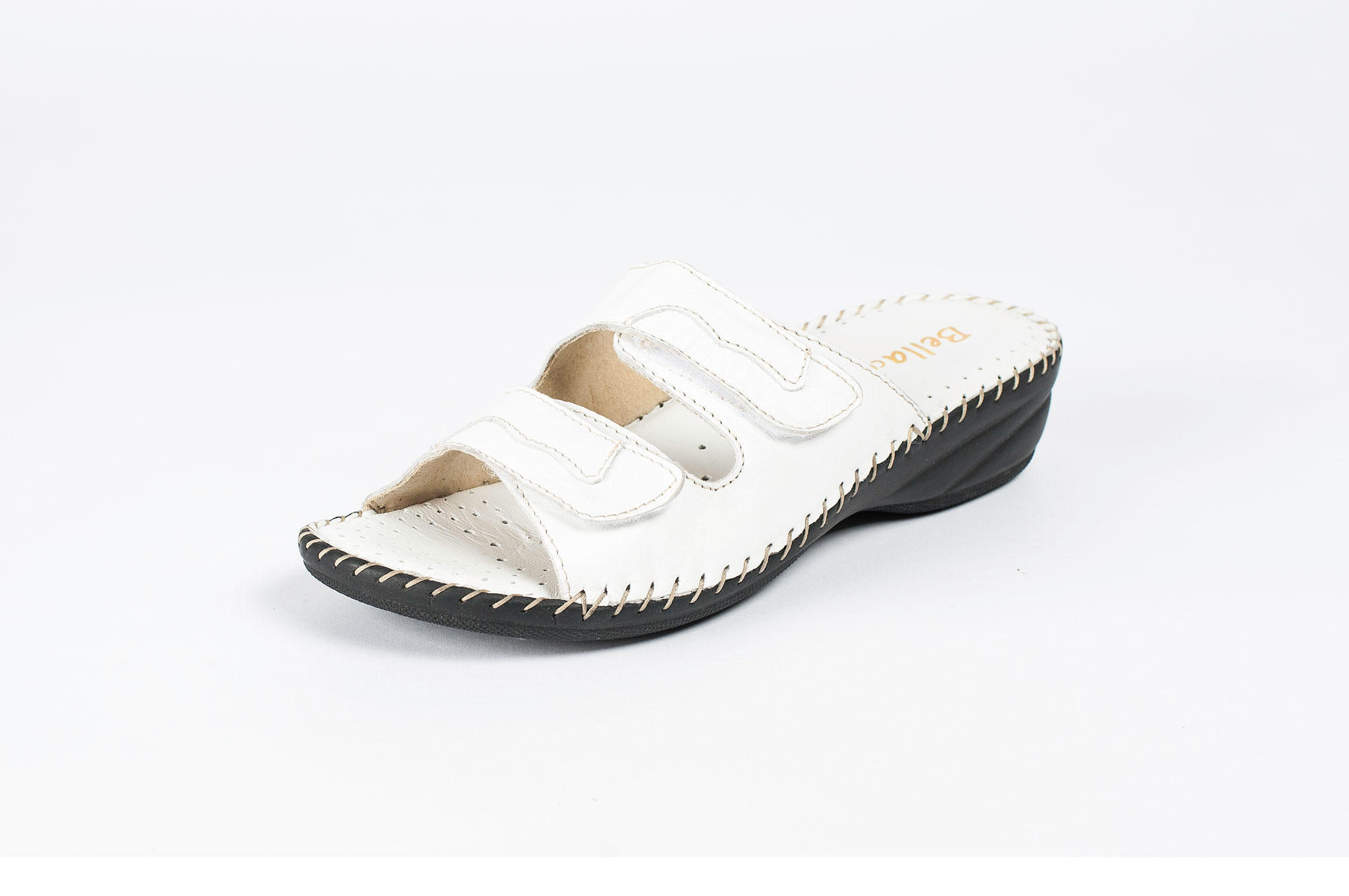 Chinelo de dois velcros com salto em cunha de 3 cm.